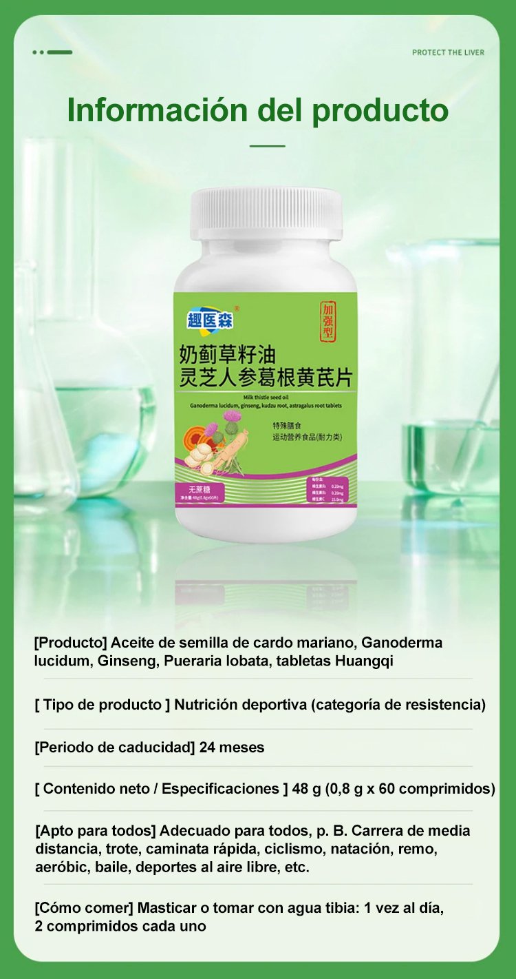Comprimidos de aceite de semilla de cardo mariano, ganoderma, ginseng, pueraria y astrágalo